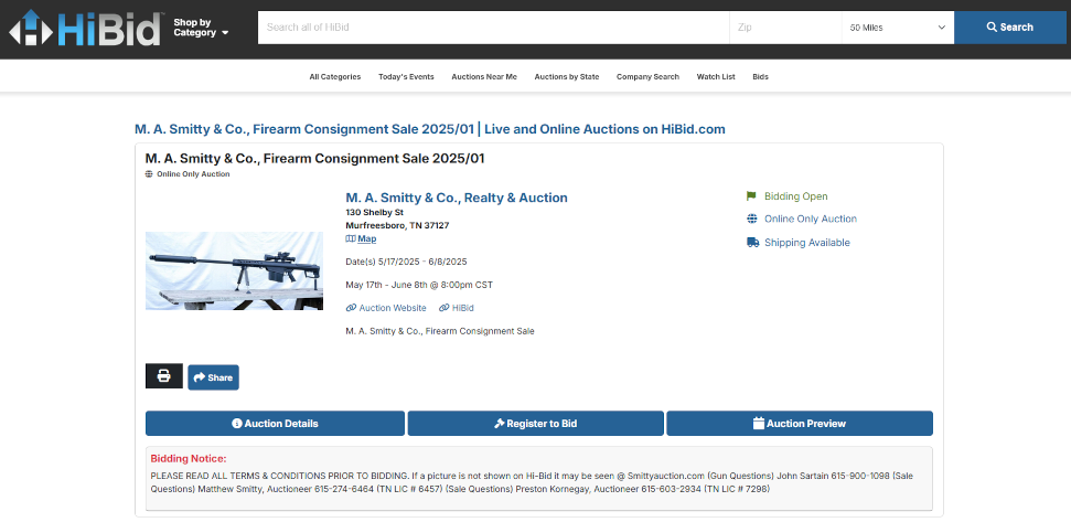 Come bid on hundreds of our guns in our online auction. Choose from rifles, handguns, and shotguns. Auction ends June 8th, 2025.